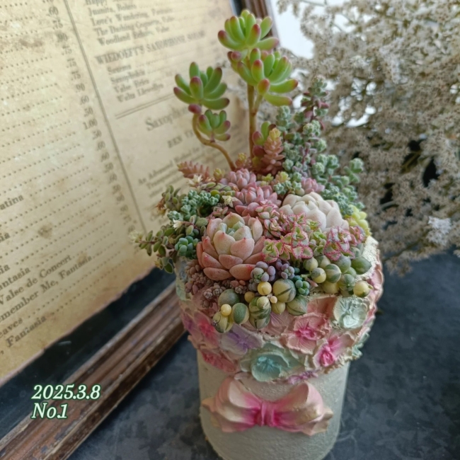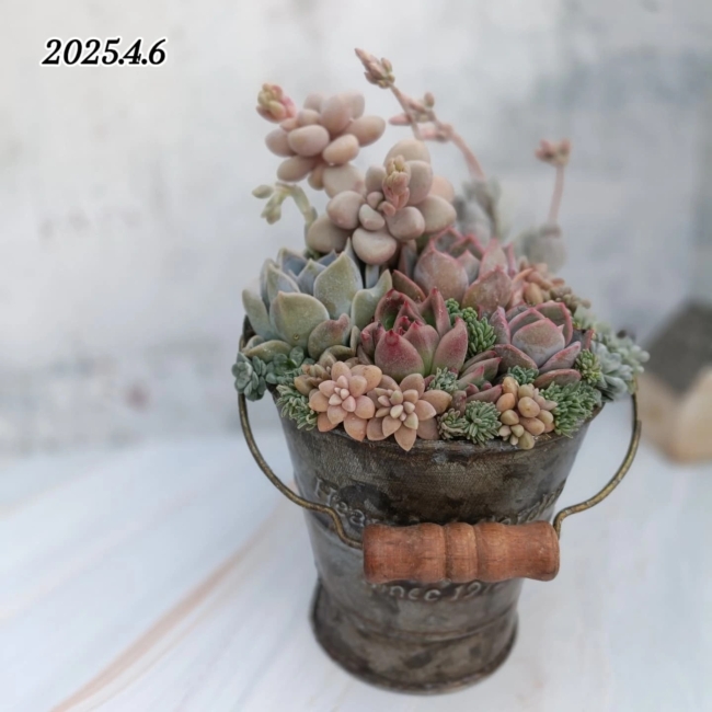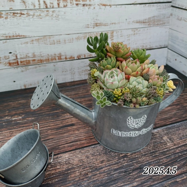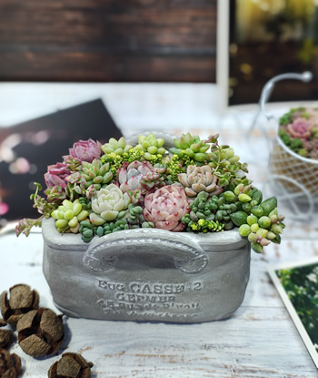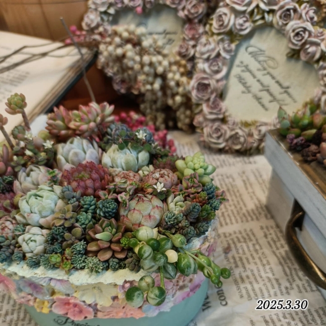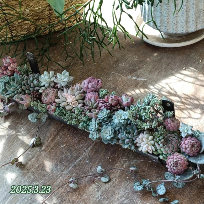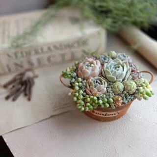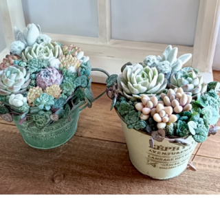 かわいい多肉たちの寄せ植え作品をお楽しみ下さい