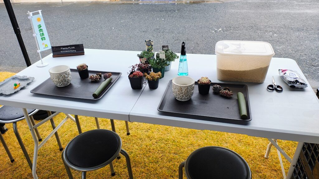 あいにく前日からの雨ということもあってお客様ははそれほど多くなかったのですがエケベリアや寄せ植えをご購入いただき、有難うございました。